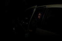 b. car-road noise, available light from interior car lights, street lights, and headlights from other cars. Could also possibly light the actors with flashlights that sit at their feet with a colored gel over them.
